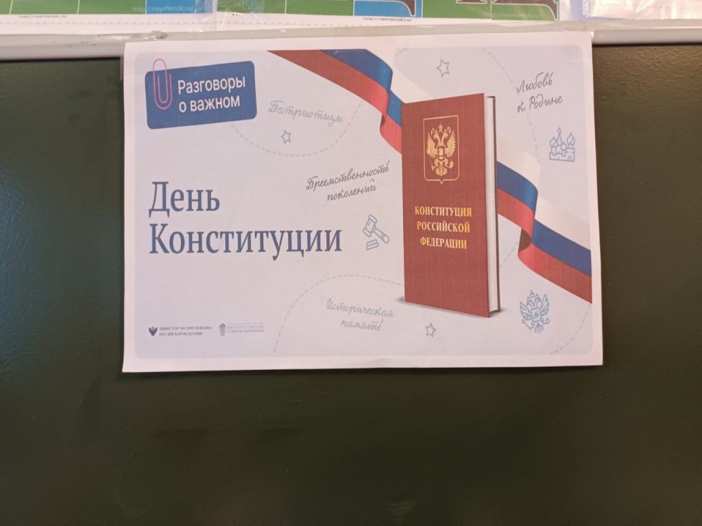 В 12.12.22 г., в школе были проведены внеурочные занятия «Разговоры о важном» посвящённые Дню Конституции. С целью занятий были знакомства учащихся Конституцией Российской Федерации как об основном законе страны. Главные гости занятий Председатель Хурала Представителей Бай-Тайгинского кожууна Экер Мандыш-оолович Байс и общественный активист, ветеран КПРФ Салчак Сергей Сээ-Сурунович.
