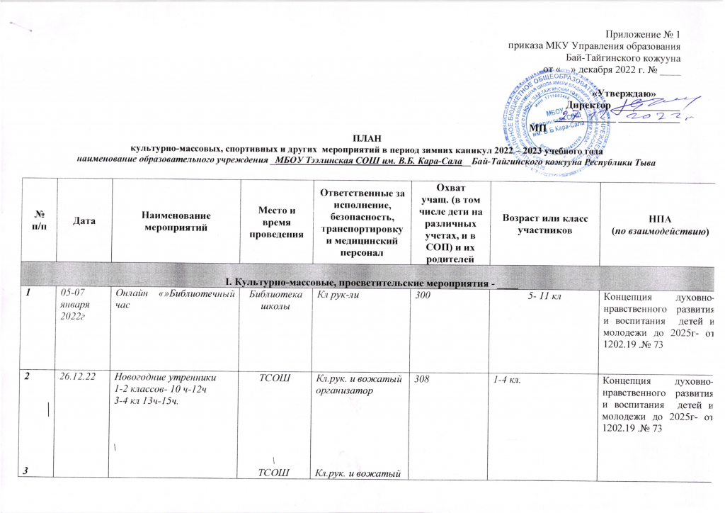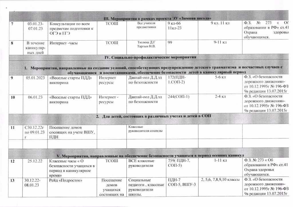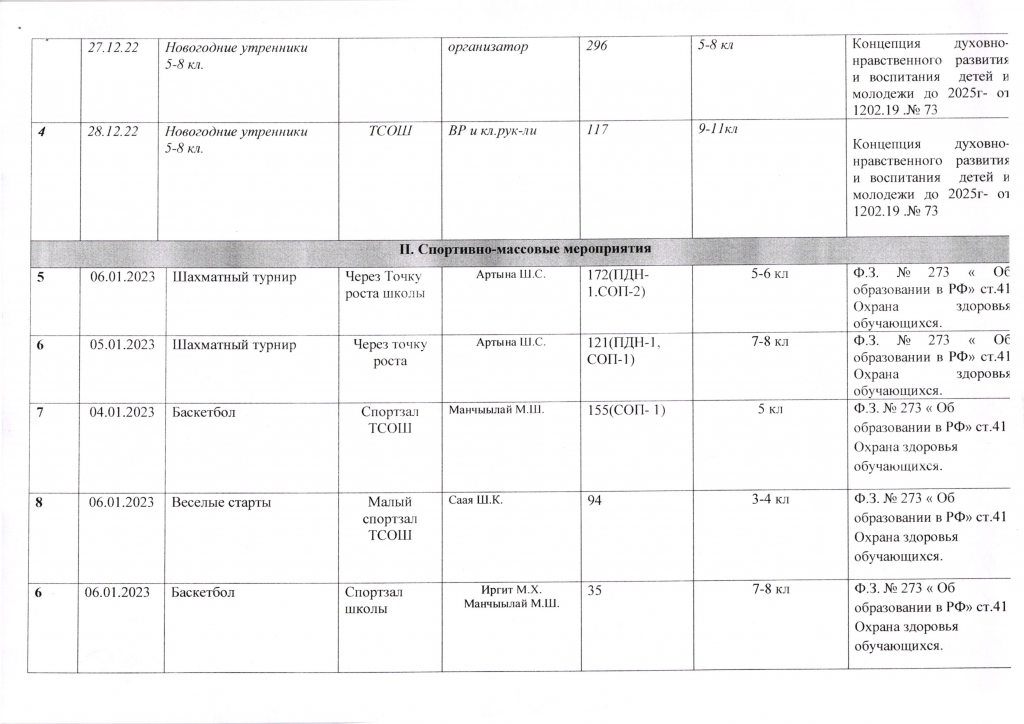 Без рубрики Зимний каникулярный план МБОУ Тээлинской СОШ им.В.Б.Кара-Сала за 2022-2023 учебный год 27.12.2022 /