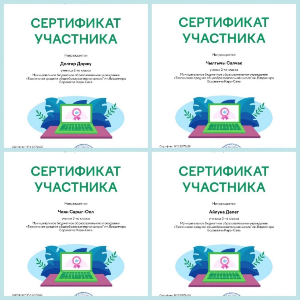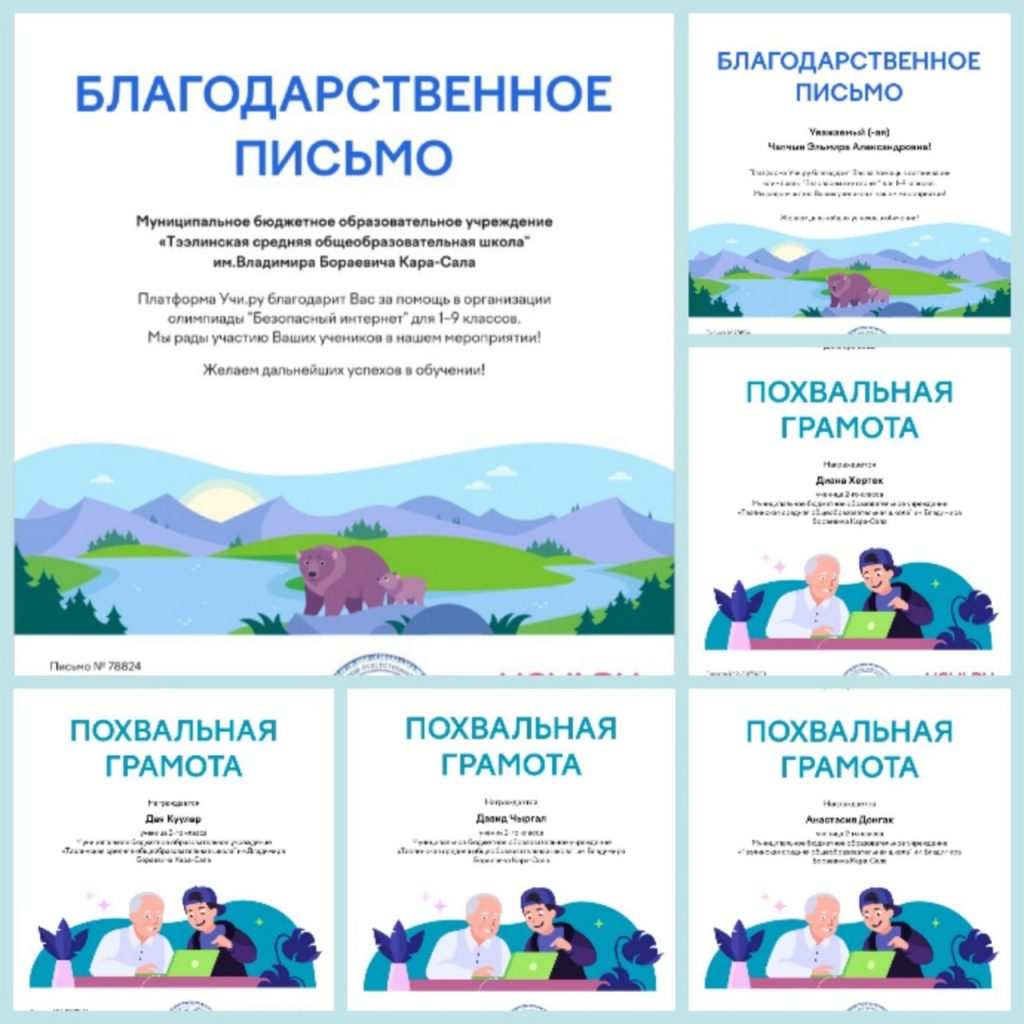 Без рубрики Учащиеся Чапчын Эльмиры Александровны активно приняли участие в олимпиаде Платформы Учи.ру » Безопасный интернет» для 1-9 классов. Награждены Похвальными грамотами и сертификатами. Общий охват: 8 учащихся. 29.12.2022 /