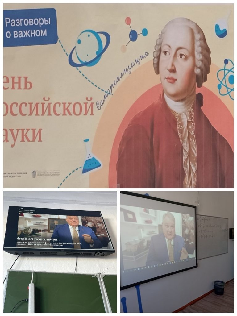 6 февраля 2023 года в школе прошло очередное занятие цикла «Разговоры о важном» посвященное Дню российской науки, который ежегодно отмечается 8 февраля. На занятиях познакомились великими российскими учёными, их открытиями, изобретениями. Общий охват 730 учащихся и 37 классных руководителей.