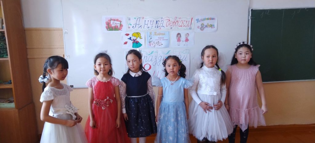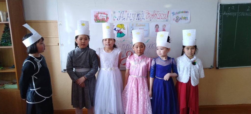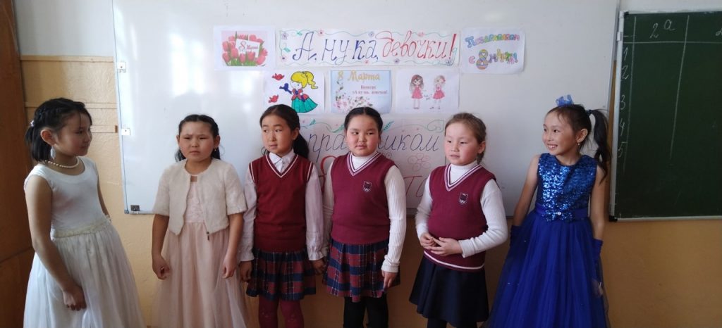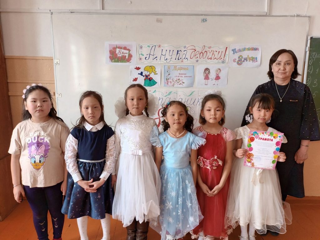 7 марта среди девочек 1-х и 2-х классов вожатым-организатором проведен конкурс «А, ну-ка, девочки!» , посвящённый Международному женскому дню 8 марта. После 5 этапов выявлены слующие победители: 1 место -команда 1 «а» класса «Принцессы». 2 место -команда 1 «б» класса «Удача» 2 место -команда 1 «в» класса «Челээш». 2 классы: 1 место — команда 2 «а» класса «Модницы» 2 место -команда 2 «б» класса «Обояшки» и команда 2 «в» класса «Ромашки» 3 место — команда 2 «г» класса «Незабудки». Поздравляем !