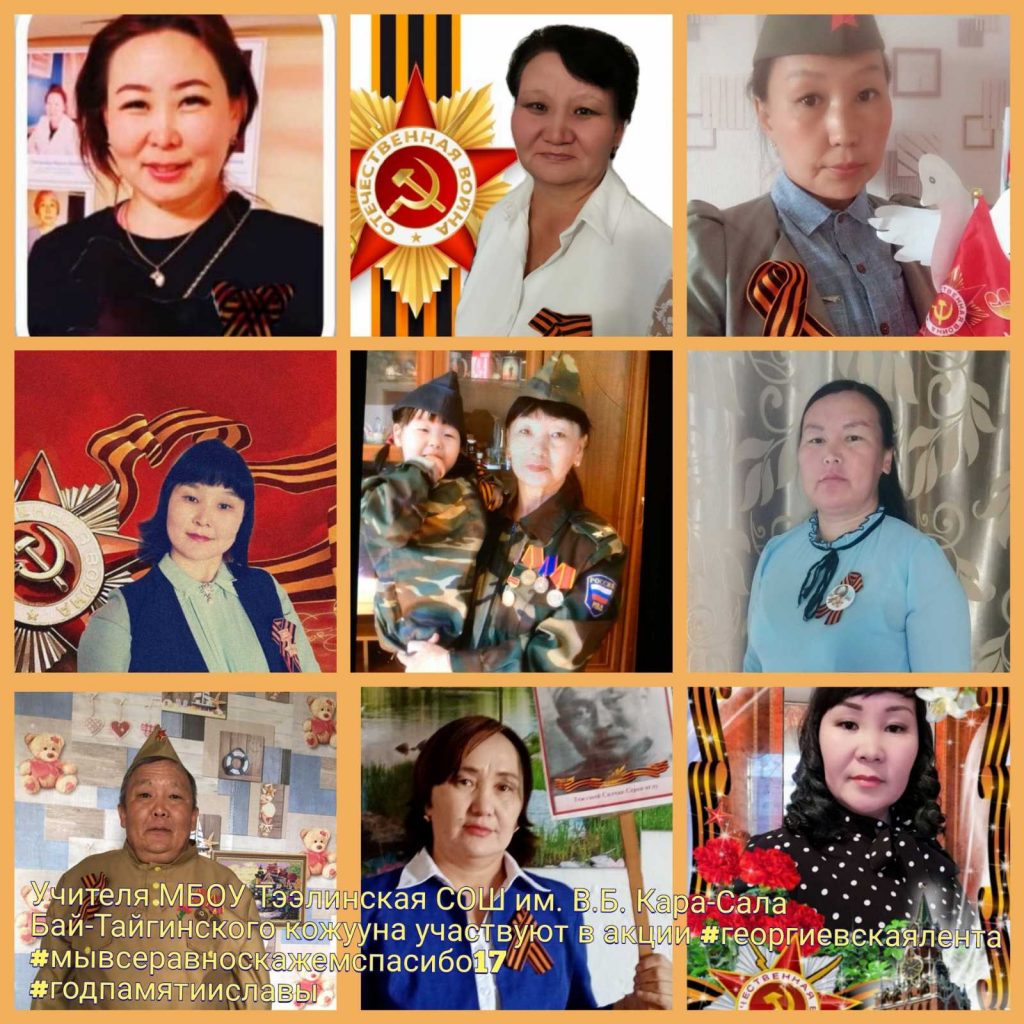 Без рубрики Учителя МБОУ Тээлинской СОШ им. В.Б. Кара-Сала Бай-Тайгинского кожууна участвуют в акциях #георгиевскаялента. 10.05.2020 /