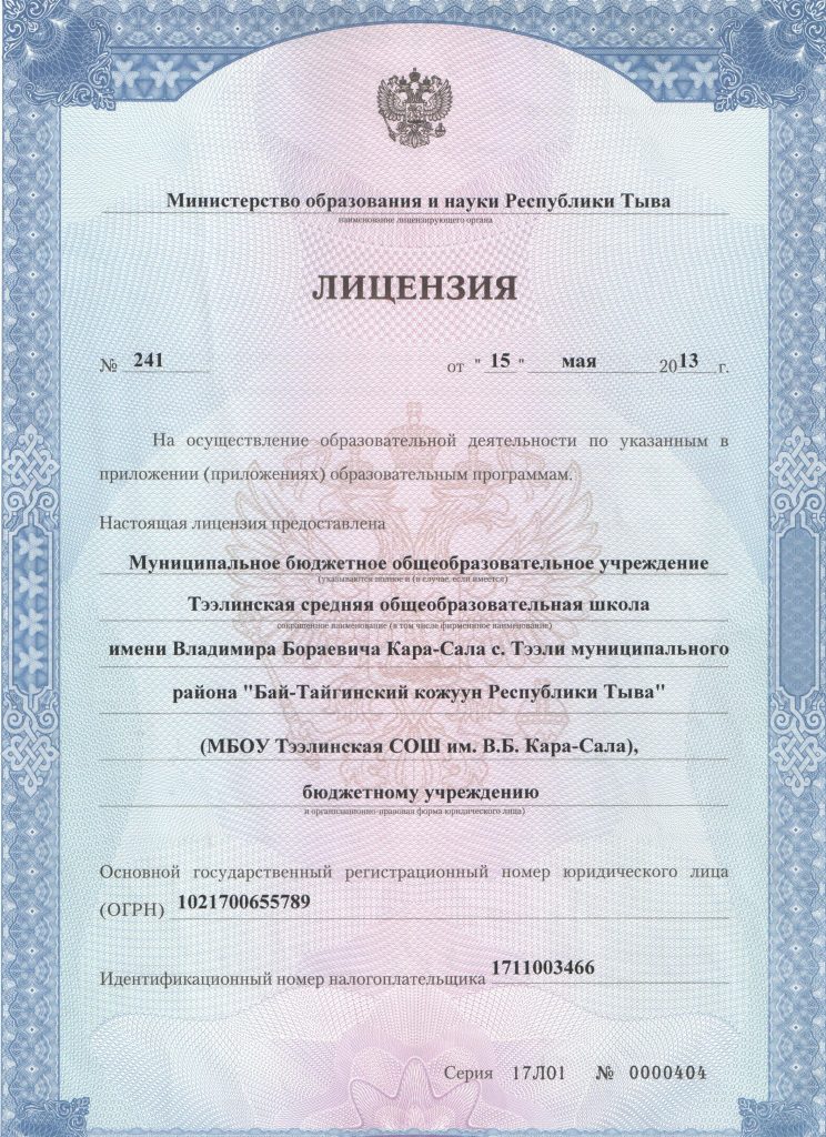 МБОУ Тээлинская СОШ им. В.Б.Кара-Сала