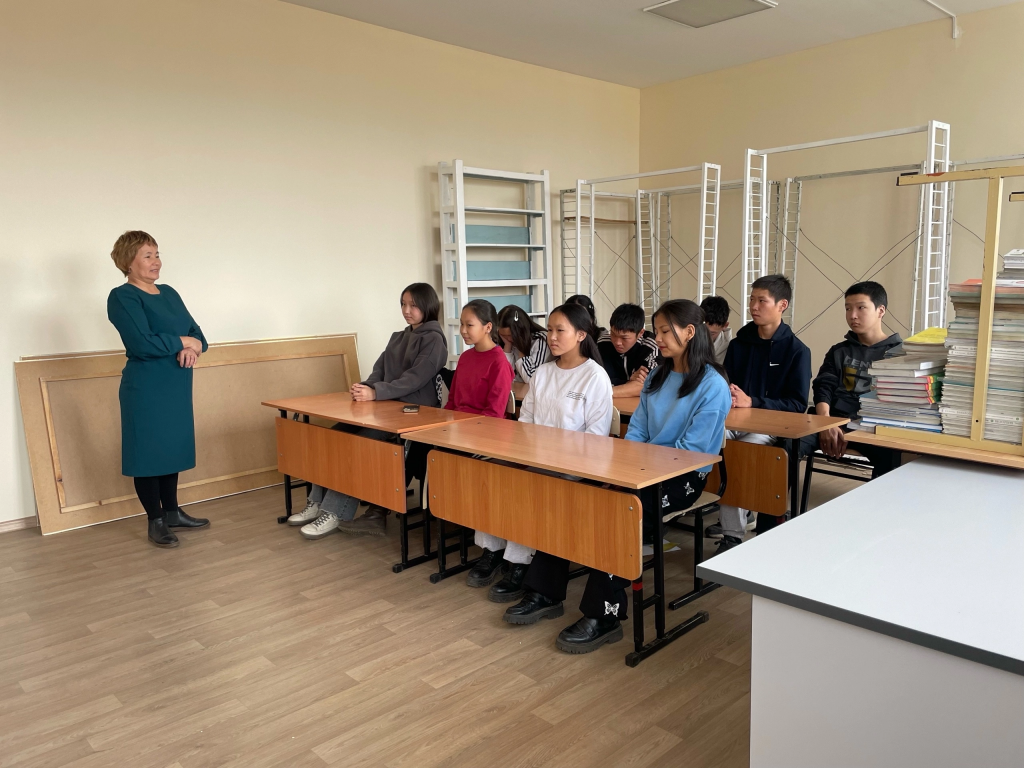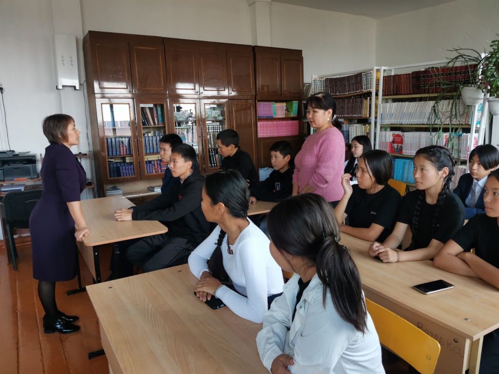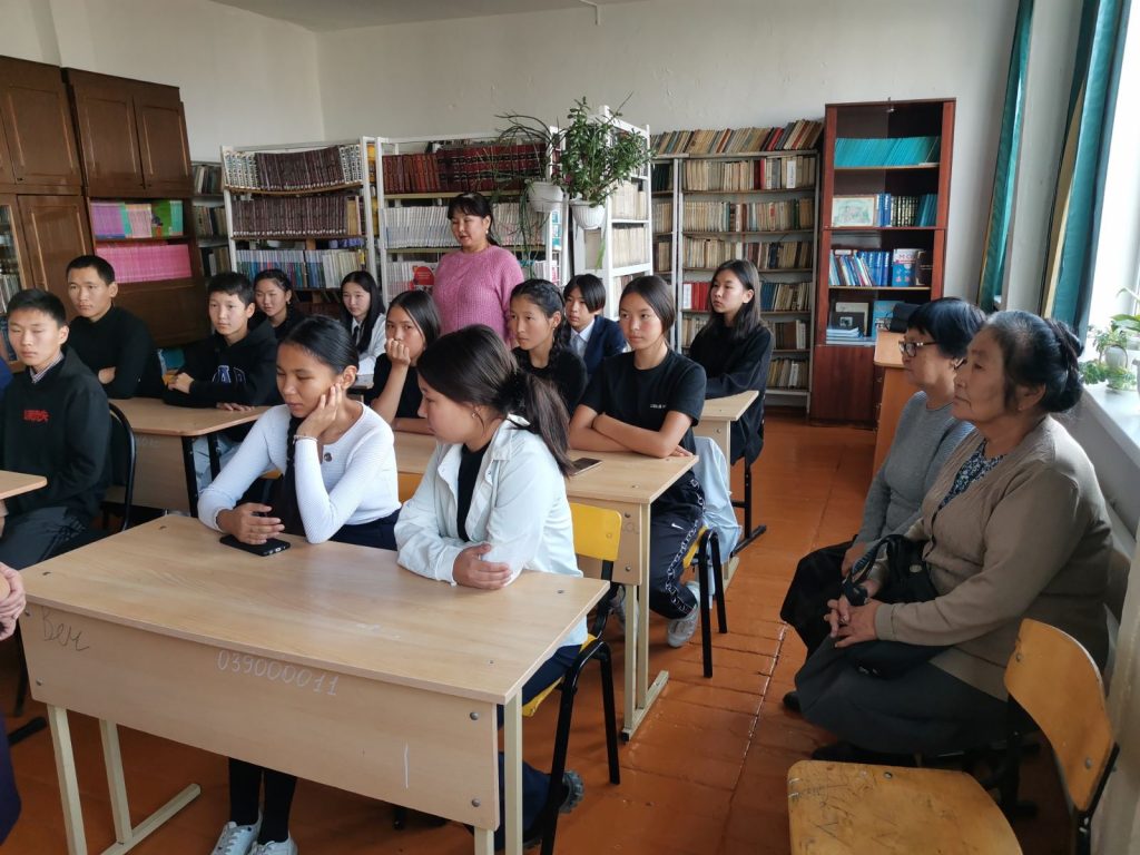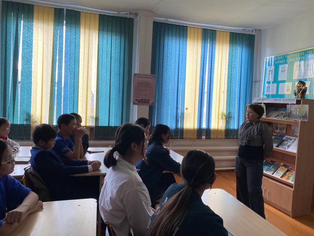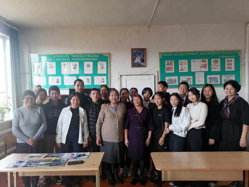 7 октября 2023 г. в МБОУ Тээлинская СОШ им. В.Б. Кара-Сала проведен открытый библиотечный классный час посвящённый к Дню Учителя «Воспоминание об учителе». Зав. библиотекой Серен-Чимит Ш.Д. рассказала 9г классу о своем школьном учителе Галина Сайыр-ооловне Демдек учителя русского языка и литературы, также присутствовали зам. директора по ВР Байдос Э.А., классный руководитель 9г класса Ондар А.Б., учитель математики Суглай-оол Э.К., учитель родного языка Иргит Р.Д. ,библиотекарь Хомушку Я.О. Классный час «Воспоминание об учителе» прошел очень интересным и душевным. Охват участников учащихся и учителей 40.